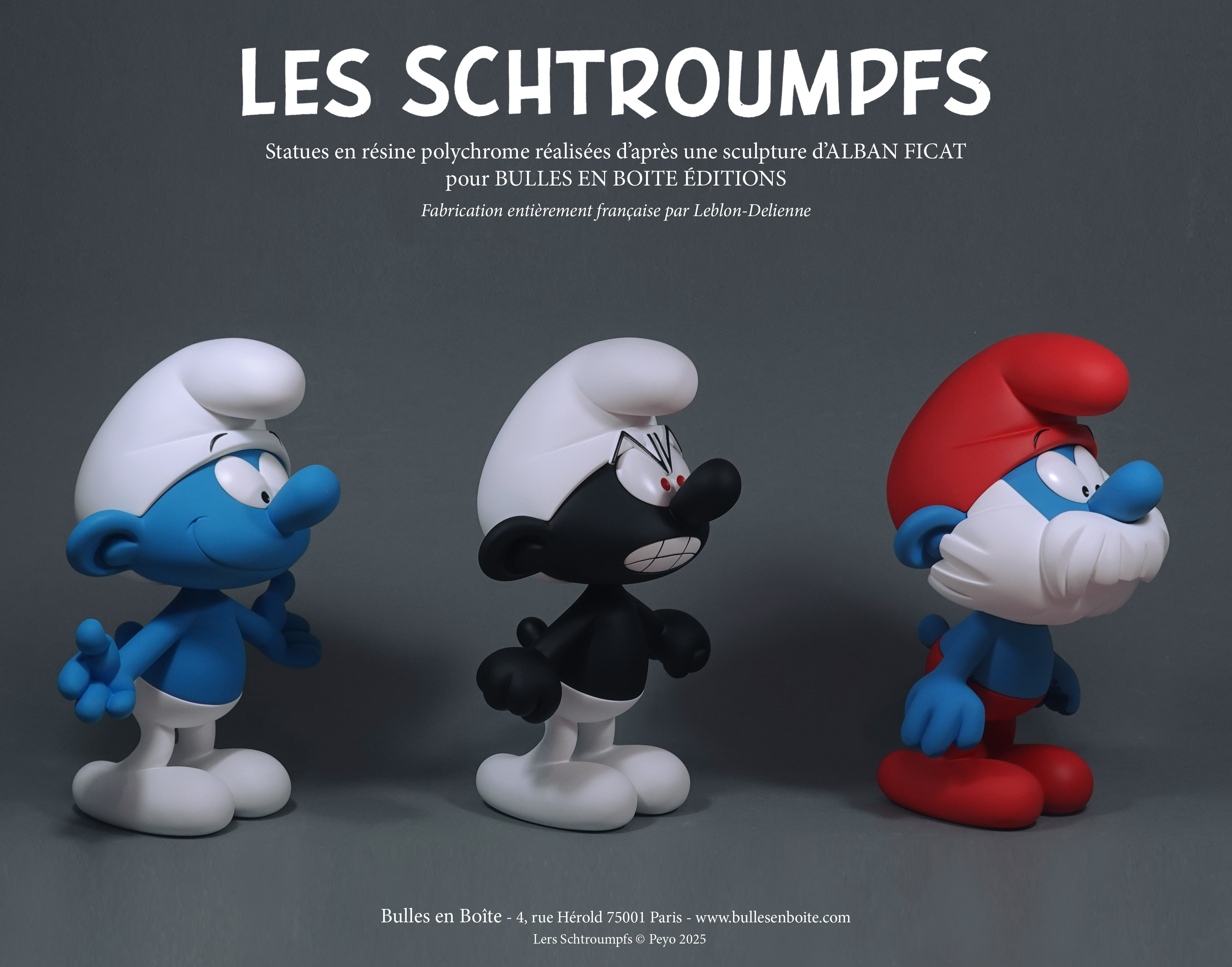 Bulle en boîte has released Papa Smurf that is a tribute to products from the 1960s, with very “vintage” shapes and proportions. Made of polychrome resin, produced in a limited edition of 65 copies, and entirely manufactured in France. This figure complete a set of 3 figure with Black Smurf and a classic Smurf, which began in 2023 to mark the 65th anniversary of the Smurfs.